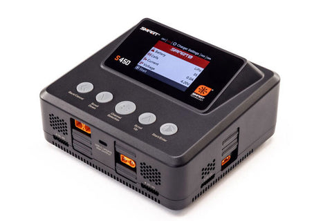 Il caricabatterie intelligente Spektrum™ S450 G2 AC/DC 4x50W è la scelta perfetta per chiunque utilizzi più batterie con requisiti di potenza diversi, sia a terra che in aria.