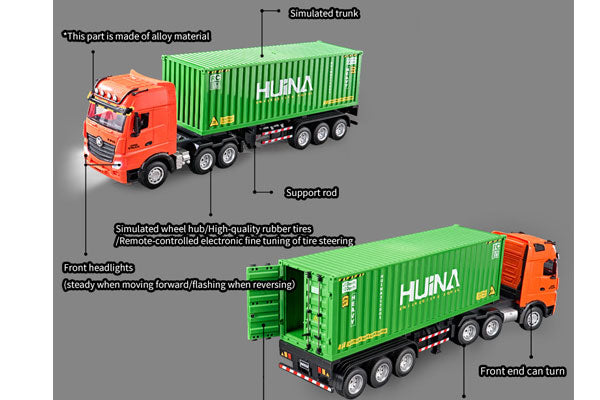 Che si tratti di muoversi in uno spazio interno o di simulare operazioni di carico di container, il camion portacontainer RC HUINA 1317 offre un'esperienza emozionante e realistica.