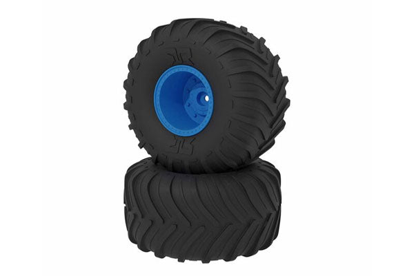 Coppia di pneumatici dBoots Chevron MT già incollati su cerchi blu. Prodotto da Arrma