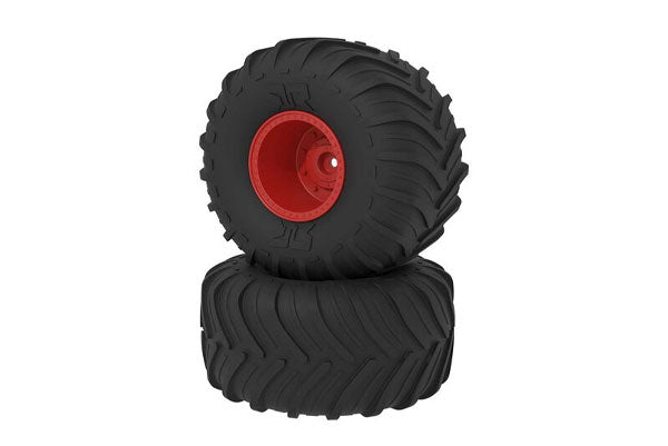 Coppia di pneumatici dBoots Chevron MT già incollati su cerchi rossi. Prodotto da Arrma