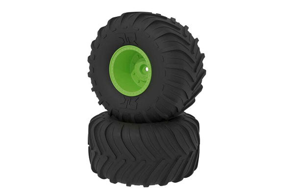 Coppia di pneumatici dBoots Chevron MT già incollati su cerchi verdi. Prodotto da Arrma