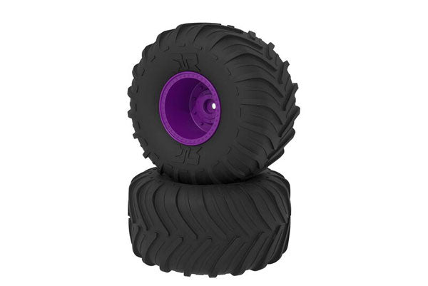 Coppia di pneumatici dBoots Chevron MT già incollati su cerchi viola. Prodotto da Arrma