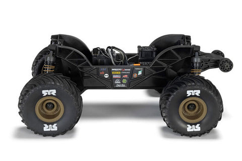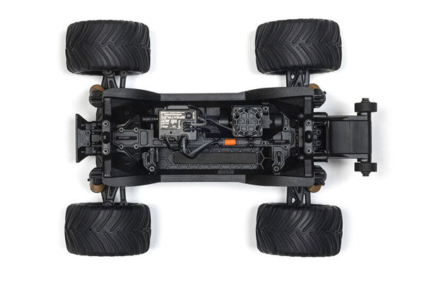 Sotto, il telaio rinforzato e le sospensioni ad alta escursione sono costruiti per resistere a ogni impatto terrificante e continuare a procedere. Questo camion non è solo resistente. È intelligente. Il telaio a vasca profonda tiene fuori sporco e detriti, così puoi spingere più forte senza intasare i meccanismi. La postura da monster truck e il baricentro elevato gli permettono di superare tutti gli ostacoli sul suo cammino. Il caos, dentro e fuori, è dove il GORGON GROM regna sovrano.