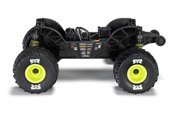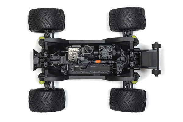 Sotto, il telaio rinforzato e le sospensioni ad alta escursione sono costruiti per resistere a ogni impatto terrificante e continuare a procedere. Questo camion non è solo resistente. È intelligente. Il telaio a vasca profonda tiene fuori sporco e detriti, così puoi spingere più forte senza intasare i meccanismi. La postura da monster truck e il baricentro elevato gli permettono di superare tutti gli ostacoli sul suo cammino. Il caos, dentro e fuori, è dove il GORGON GROM regna sovrano.