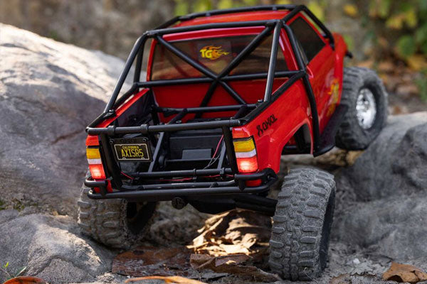 L'autenticità della SR5 inizia con la carrozzeria Xtra Cab dettagliata, con griglia, fari anteriori, fanali posteriori e chiusure del cofano stampati in scala, e prosegue fino agli straordinari assali Trail-Gear (TG), che non solo hanno un aspetto accattivante, ma ne aumentano anche le prestazioni. Gli assali a portale AR45P presentano alloggiamenti in stile artigianale autentico che catturano perfettamente il design Trail-Gear, offrendo al contempo un'altezza da terra e una durata superiori. A completare l'autentico look Trail-Gear ci sono i cerchi beadlock Creeper Lock con licenza ufficiale, montati su pneumatici Interco Super Swamper.