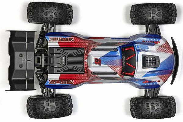 La piastra del telaio, i differenziali, il paraurti anteriore, la piastra paramotore e persino il supporto dell'ala sono stati tutti migliorati con la robustezza EXB (Extreme Bash). Nuove protezioni laterali, un rinforzo torre-torre in due pezzi e una torre interna della carrozzeria aggiungono più resistenza e semplificano la manutenzione. L'iconica carrozzeria del monster truck KRATON è ora disponibile in due nuove straordinarie finiture di fabbrica multicolore e ha un comodo sistema di ritenzione della carrozzeria a sgancio rapido e senza clip.