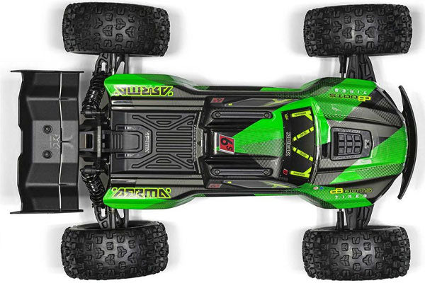 Con il suo sistema brushless Spektrum compatibile con 6S, puoi far correre e saltare il KRATON 6S BLX 4X4 a incredibili velocità reali di oltre 65 mph. I componenti includono un ESC Firma 150A Smart V2 con un nuovo firmware più potente, un motore brushless Firma 2050Kv e un affidabile servosterzo S665 con ingranaggi in acciaio. L'elettronica è impermeabile, quindi puoi sfrecciare senza preoccupazioni in qualsiasi condizione, persino nel fango o nella neve.