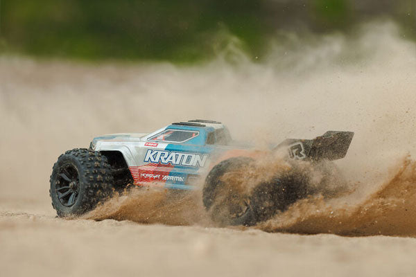 Costruisci delle rampe. Conquista il tuo terreno. L'ARRMA MINI KRATON 3S BLX 4X4 ti offre tutto ciò che ti serve per creare puro divertimento in scala ridotta. Con la tua batteria LiPo 3S, scoprirai quanta potenza può sprigionare un mostro di velocità compatto.