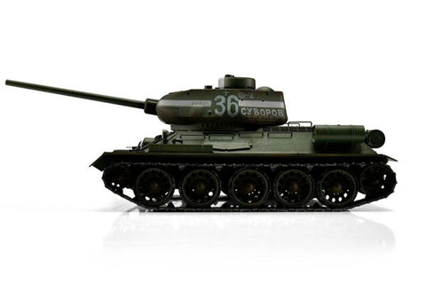 Il Pro-Edition T-34/85 BB ha la capacità di ruotare la torretta di 360°, ha torretta, scafo, ruote e cingoli in metallo, uno speaker per imitare i suoni di un vero carro e una marmitta per emettere i fumi di scarico.