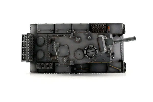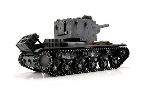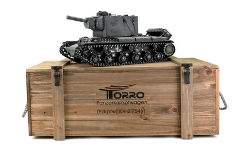 Con un peso di circa sei chilogrammi, il carro armato RC KV-2 754(r) è ideale per il modellista esigente. La Torro Pro Edition colpisce per la finitura aerografata a mano di qualità eccezionale e la tecnologia del circuito stampato a 2,4 GHz con altoparlante integrato. Grazie al peso elevato, questo modello ha caratteristiche di guida superiori, soprattutto fuoristrada. I cingoli di alta qualità, le ruote motrici e folli, nonché le ruote stradali e lo scafo inferiore sono realizzati in metallo. Accessori come adesivi coordinati completano perfettamente la replica in scala reale.