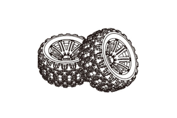 Pneumatici già incollati su cerchio (Pz. 2) per Hyper Go 1:12. Prodotto da MJX