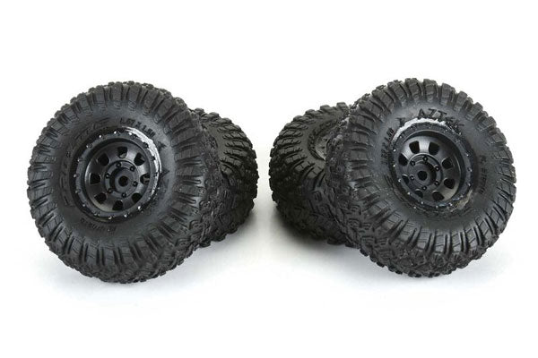 Pneumatico Atzek anteriore/posteriore montato su cerchio Black Clobber (Pz. 4) per SCX30. Prodotto da Pro-Line Racing
